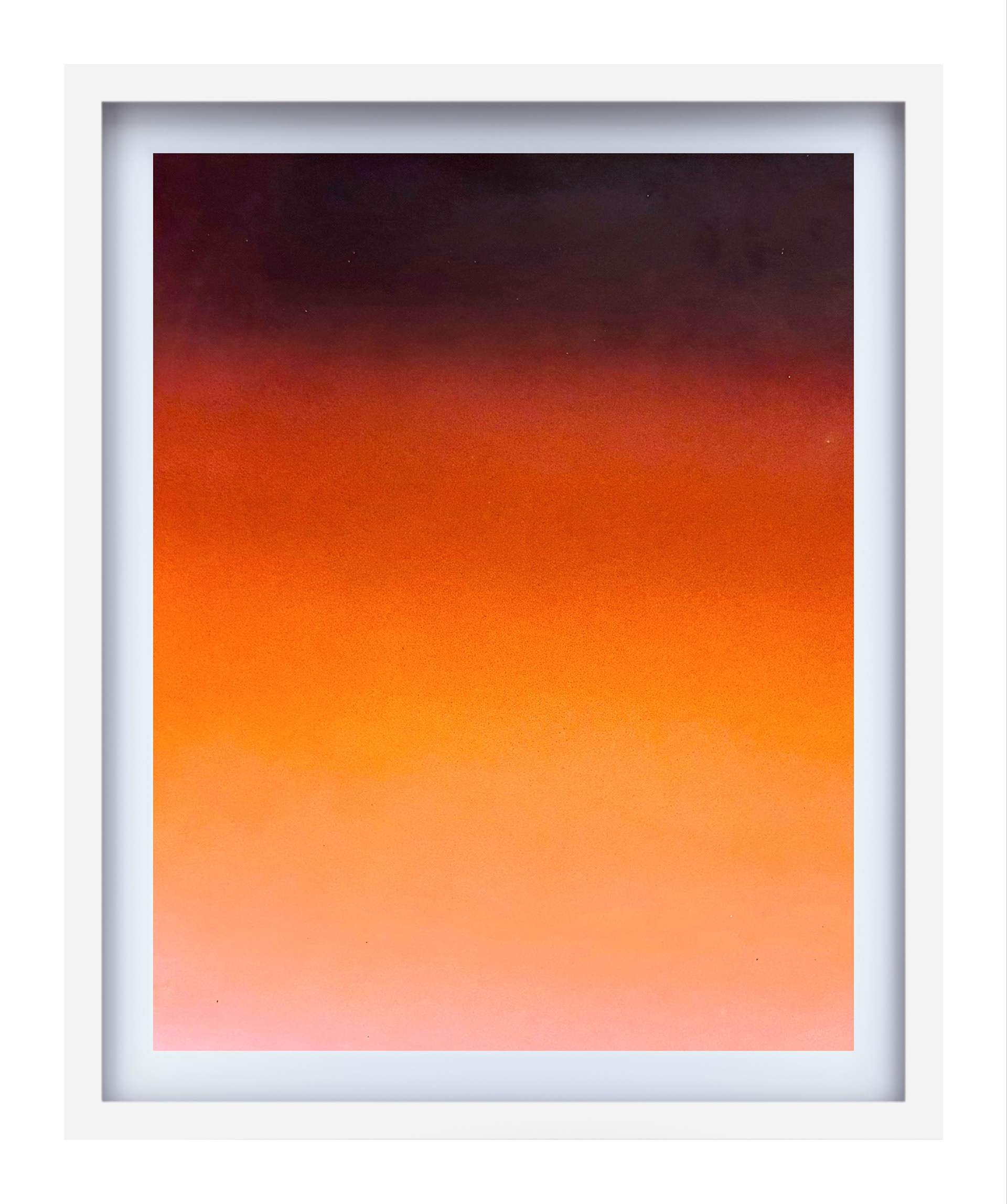 Cada pieza, con su transición de color, se convierte en un fragmento de tiempo suspendido: momentos que no pueden retenerse, apenas recordarse. Los matices cambian como cambian los recuerdos —difusos, mutables, filtrados por la emoción y el tiempo. Lo que alguna vez fue claro puede volverse turbio; lo que parecía oscuro, adquirir nuevos brillos. Una contemplación lenta como una respiración visual que se disuelve entre límites borrosos, como lo hace la memoria. A través de esta serie, se explora la poética del instante: la fragilidad de lo vivido, la belleza de lo que ya no es, y la certeza de que todo, como el cielo, está en perpetua transformación.